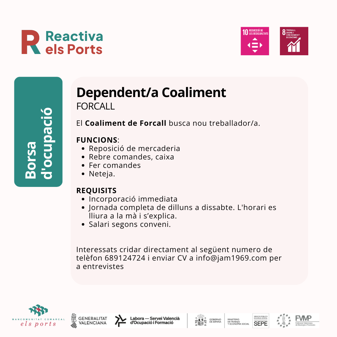 El Coaliment de Forcall busca nou treballador/a.