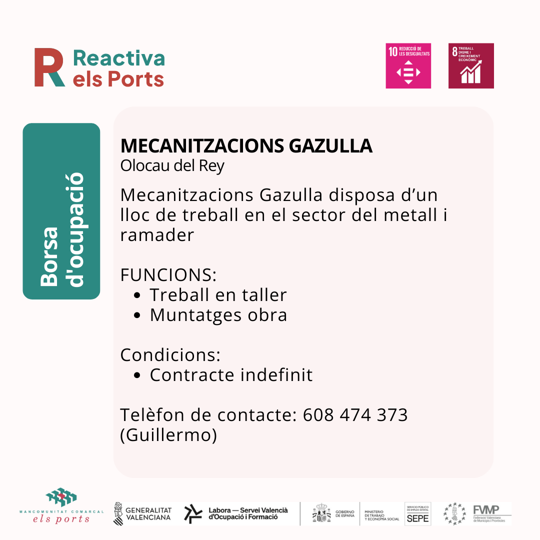 Mecanitzacions Gazulla disposa d’un lloc de treball en el sector del metall i ramader