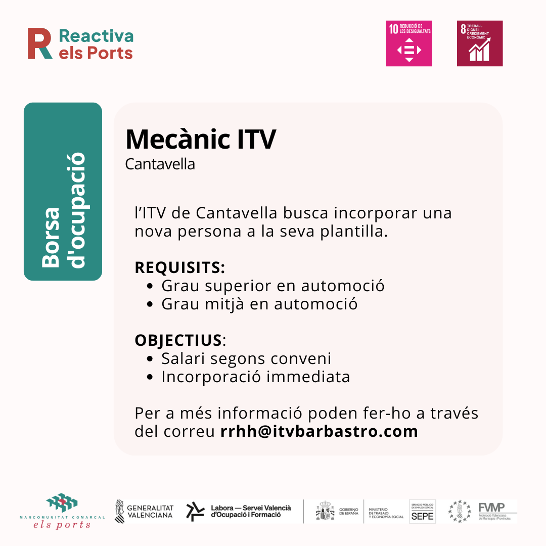l’ITV de Cantavella busca incorporar una nova persona a la seva plantilla. ç